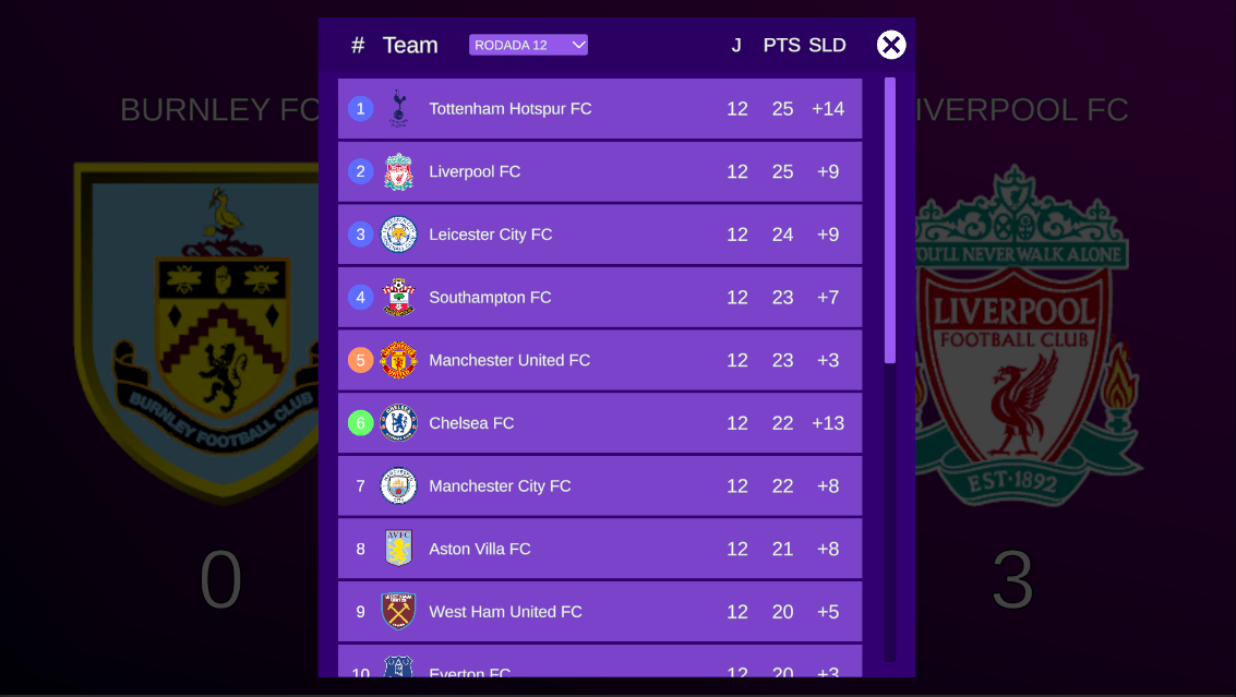 This Unity project connects to a Premier League API to display real-time and season-based football data in a clean and interactive way.